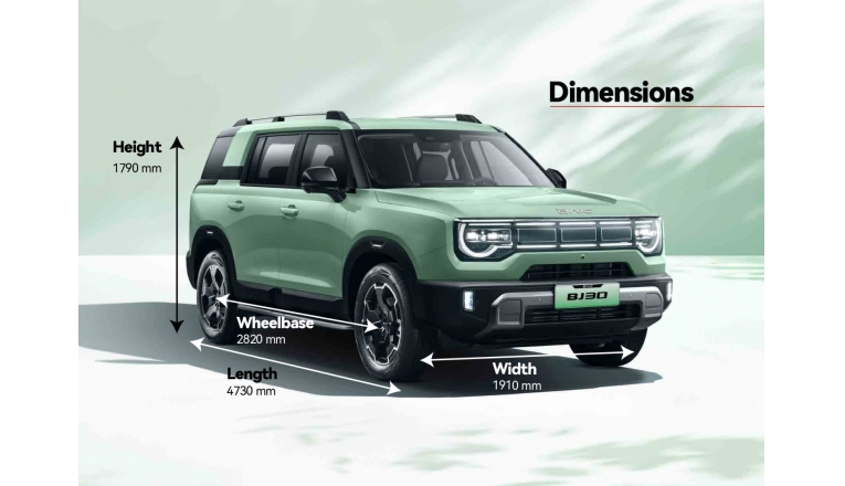 Dimensinya adalah panjang 4.730 mm, lebar 1.910 mm, dan tinggi 1.790 mm.