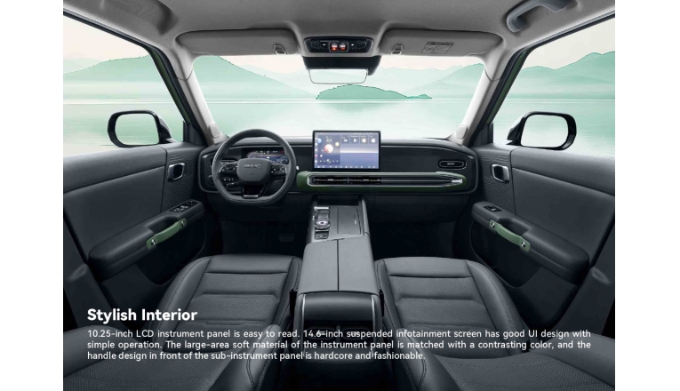 Interior: Layar ganda (instrumen 10,25 inci, infotainment 14,6 inci), ambient light 64 warna, kursi elektrik, dan material soft touch