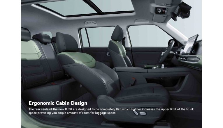 BAIC BJ30 adalah SUV hybrid dengan mesin bensin 1.500cc turbo dan dua motor listrik yang menghasilkan tenaga gabungan hingga 403 hp dan torsi 685 Nm. Spesifikasinya mencakup transmisi DHT, 7 mode berkendara termasuk 4 mode off-road, ground clearance 215 mm, serta fitur ADAS (Advanced Driver-Assistance Systems).